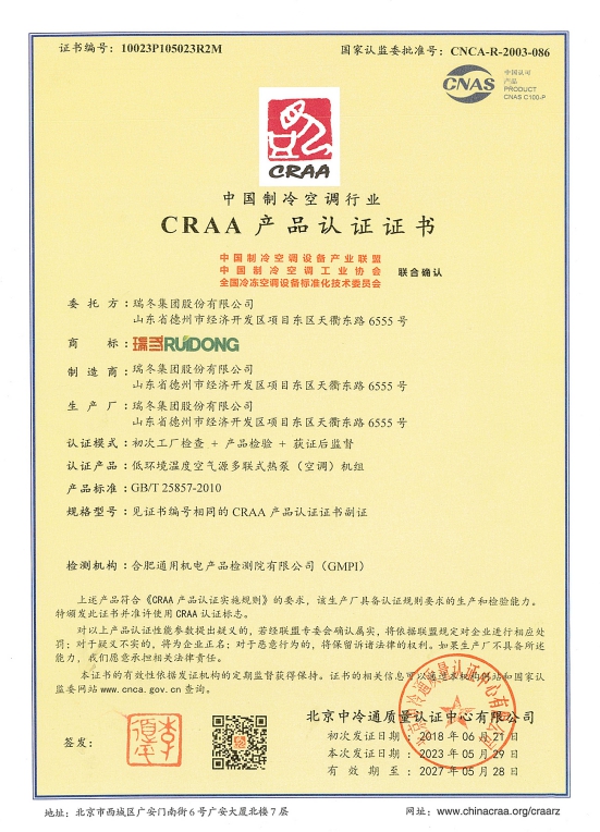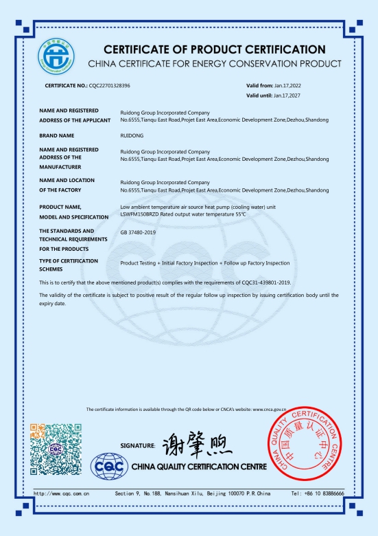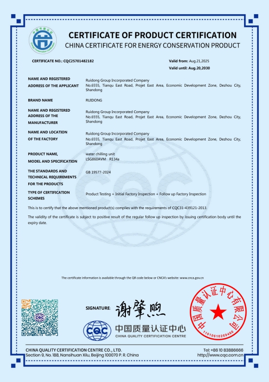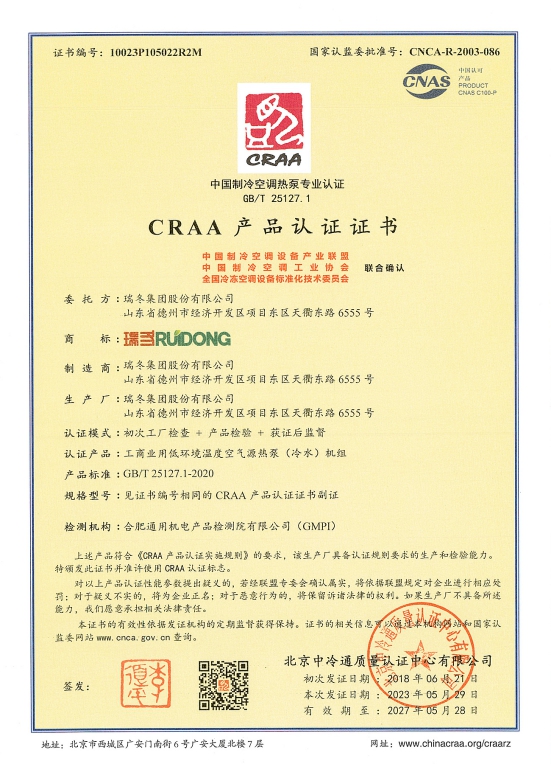 Сертификат CE: чиллер с воздушным охлаждением и тепловой насос