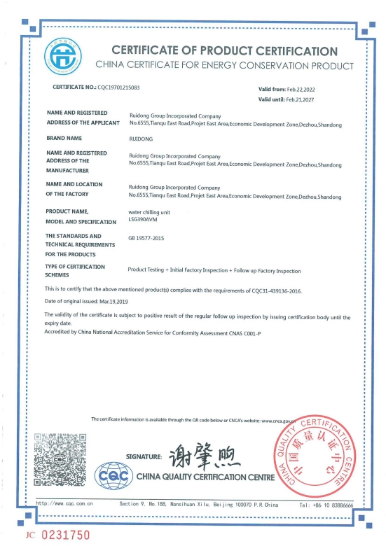 Сертификат CE: чиллер с воздушным охлаждением и тепловой насос